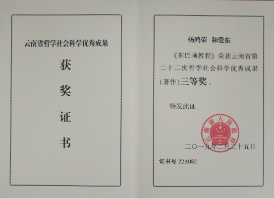 在2018年度云南省第二十二次哲学社会科学优秀成果奖评选活动中,我校教师杨鸿荣、和爱东合著的《东巴画教程》、卜文虎的著作《边疆民族地区城市化转型社区的资产建设研究——以丽江纳西族三村为个案》两项成果荣获“云南省第二十二次哲学社会科学优秀成果奖(著作)三等奖”。