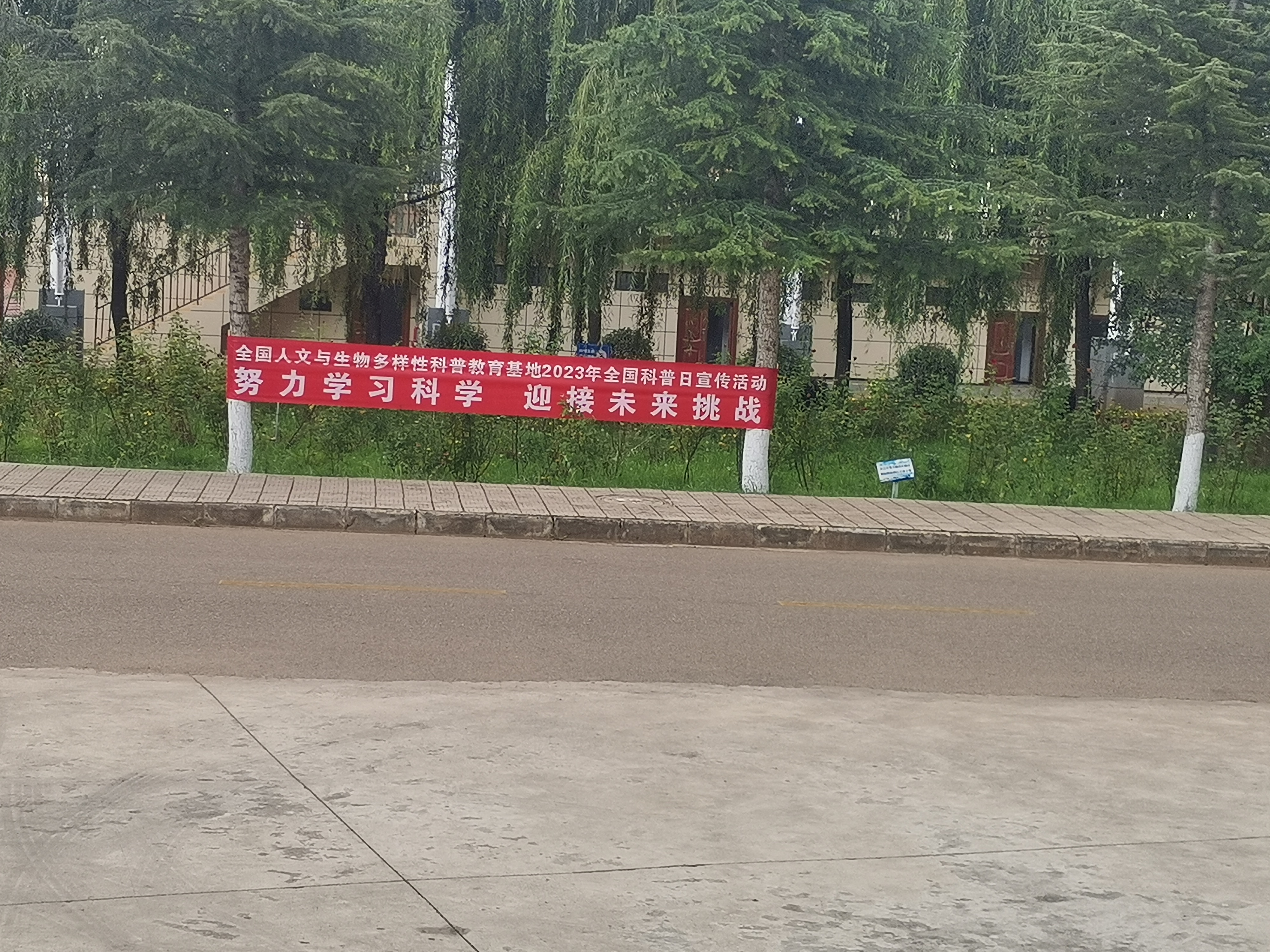 9月17日—23日,2023年全国科普日期间,校园内悬挂科普宣传标语横幅,营造崇尚科技、热爱科技的氛围。