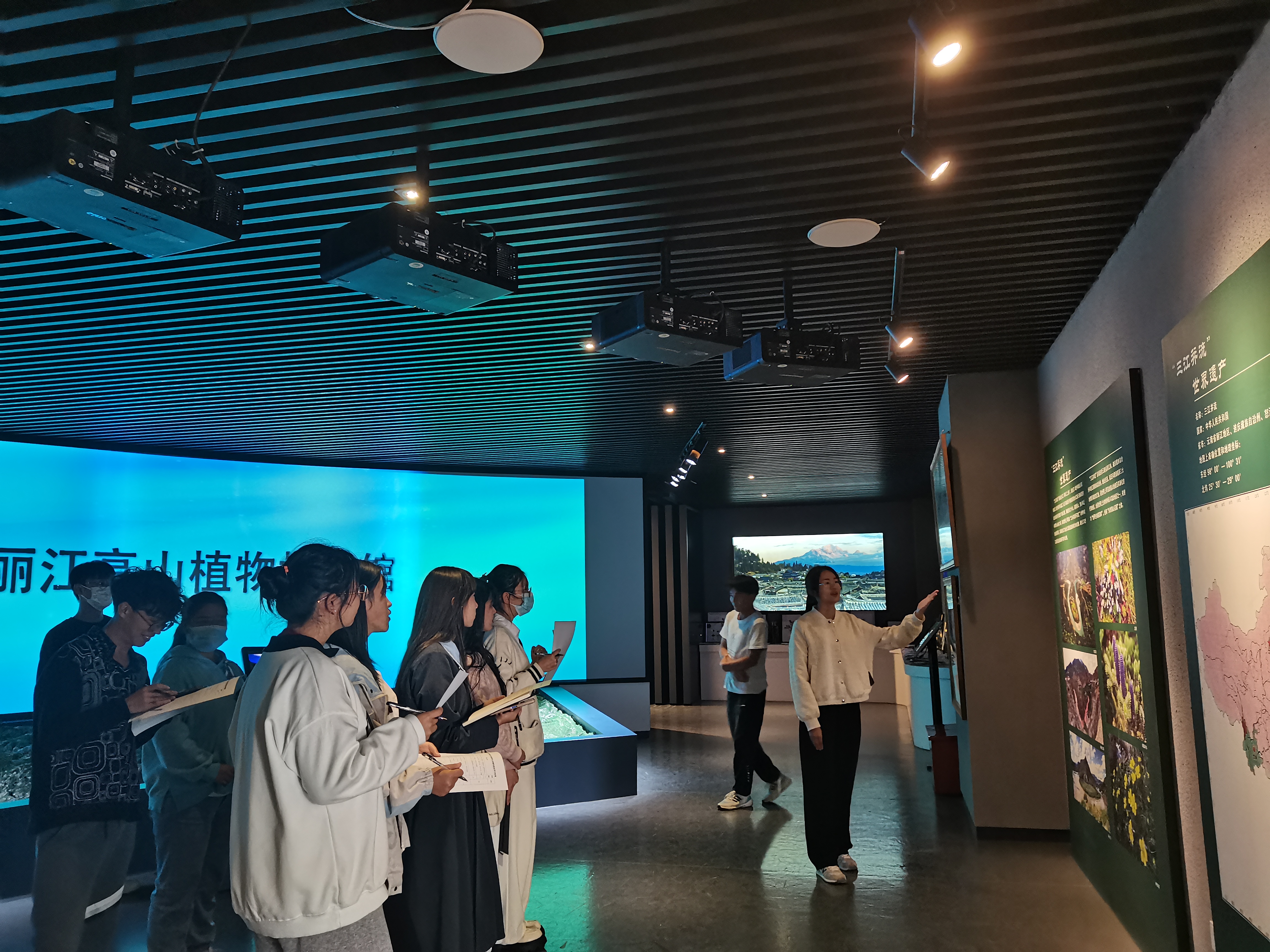 学校全国人文与生物多样性科普教育基地依托丽江高山植物标本馆开展了生物多样性科普教育活动。丽江高山植物标本馆坚持“以人为本”的设计理念,利用现代展示手段,向学生生动展示了丽江高山植物的组成和多样性的特点,成为学生学习植物学的重要途径。呼吁学生要尊重自然、顺应自然、保护自然,探索人与自然和谐共生之路,促进经济社会文化发展与生态保护协调统一,共建美丽新中国的云南篇章。