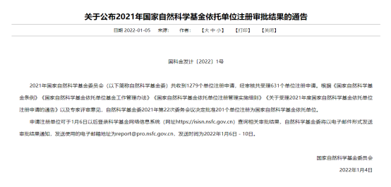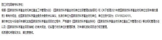 2022年1月5日,国家自然科学基金委员会正式下发了《关于公布2021年国家自然科学基金依托单位注册审批结果的通告》(国科金发计〔2022〕1号),我校通过国家自然科学基金委员会评审,成功获批为“国家自然科学基金依托单位”,这是我校科研工作的一大重要突破,标志着我校具备了独立申报和承担国家自然科学基金项目的资格。
