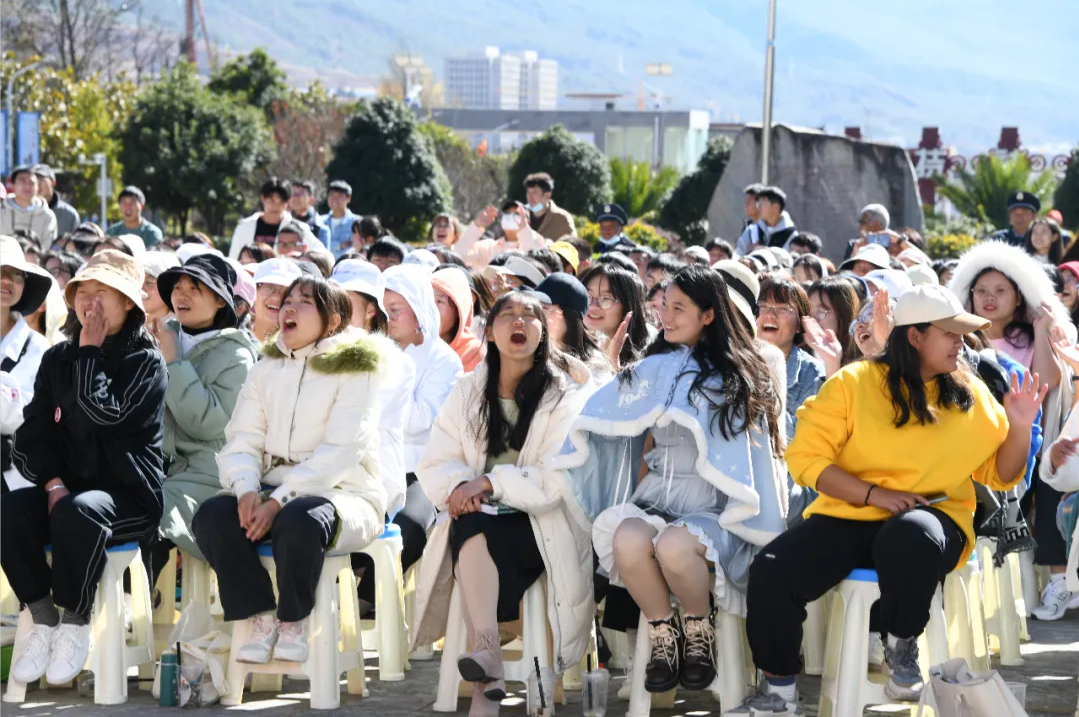 2021年12月14日中午,云南省滇剧院的文化大篷车·千乡万里行惠民演出走进丽江师范高等专科学校,学校科技处和团委组织了1000余名师生观看了演出。