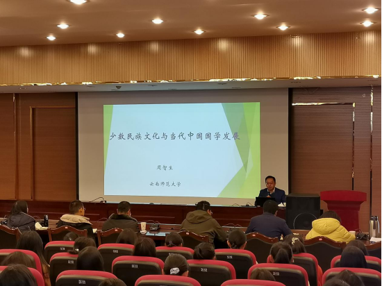 讲座主要围绕以下四方面内容展开:一、什么是新时代的中国国学;二、中国传统文化发展与少数民族文化的交融;三、中国当代国学发展的历史使命;四、优化当代中国国学的发展思考。