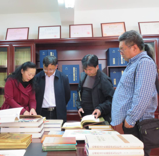 会后毕天云校长一行在李德静院长带领下参观了丽江市东巴文化研究院的实验语音室、图书资料室、在建的遗产陈列室外景等。
