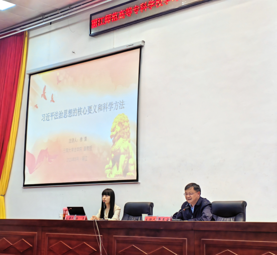 毕天云书记在总结时强调:学校将以此次讲座为契机,把深入学习贯彻习近平法治思想作为长期任务持续推进,坚持用习近平法治思想武装头脑、指导实践、推动工作,不断提高应用法治思维和法治方式来推动学校深化改革、化解矛盾、维护稳定、应对风险等方面的提升。我们要将学习、贯彻、执行习近平法治思想转化为我们依法治校、依法治教、依法治学这三个方面落到实处,要把习近平法治思想转化为我们提高依法治校、依法治教、依法治学、依法办学的能力、意识和制度,扎实推进学校在法治的轨道上面实现我们更好的发展目标,来实现我们更高质量的发展。打造“团结丽师、质量丽师、品牌丽师、活力丽师、文明丽师”,推进学校治理体系和治理能力的现代化中主要就是学校治理的法治化,在法治化的轨道上早日实现学校升本目标,努力建设教师教育特色鲜明的地方应用型大学。